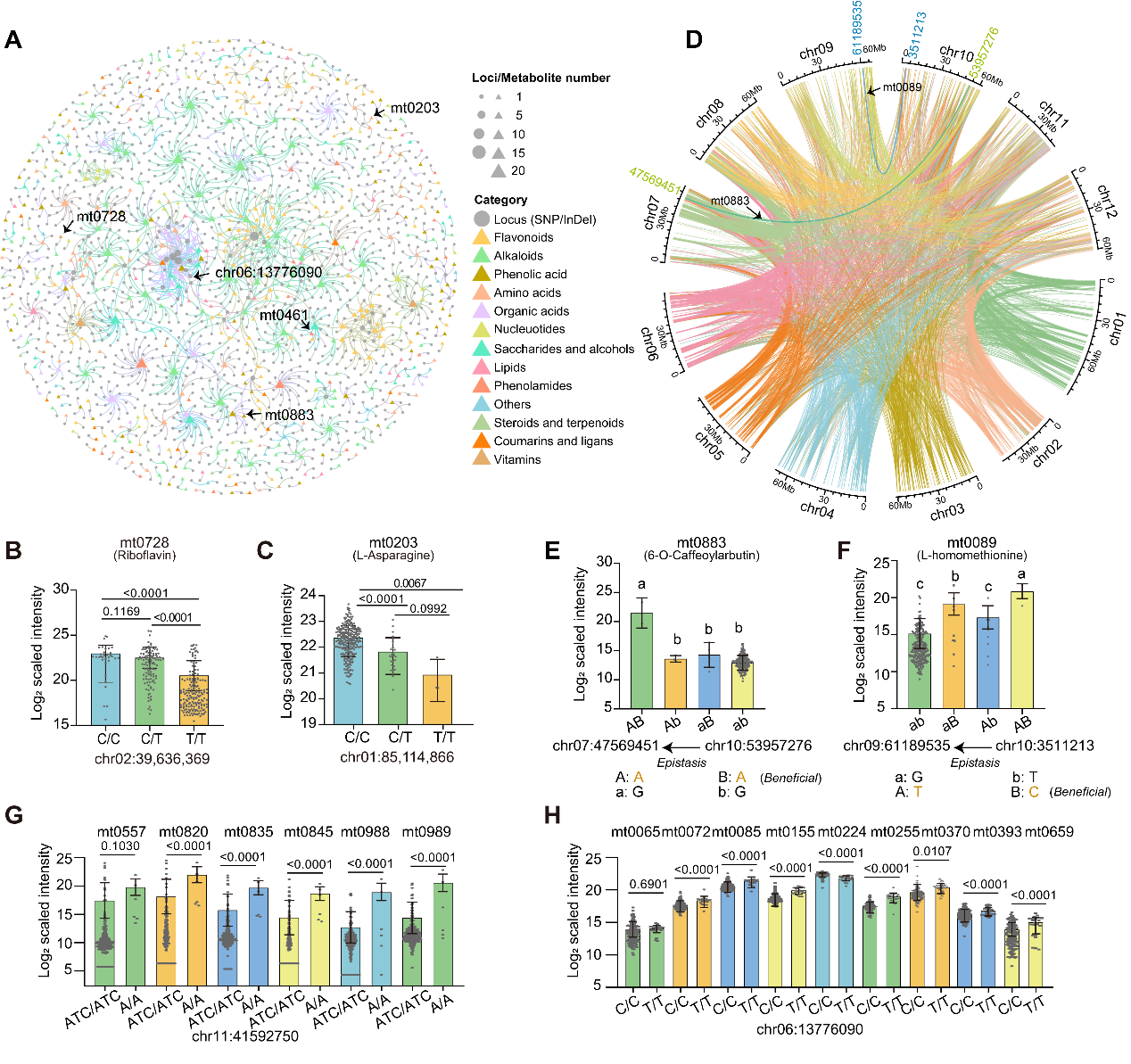 图6|马铃薯块茎代谢物遗传调控的复杂网络