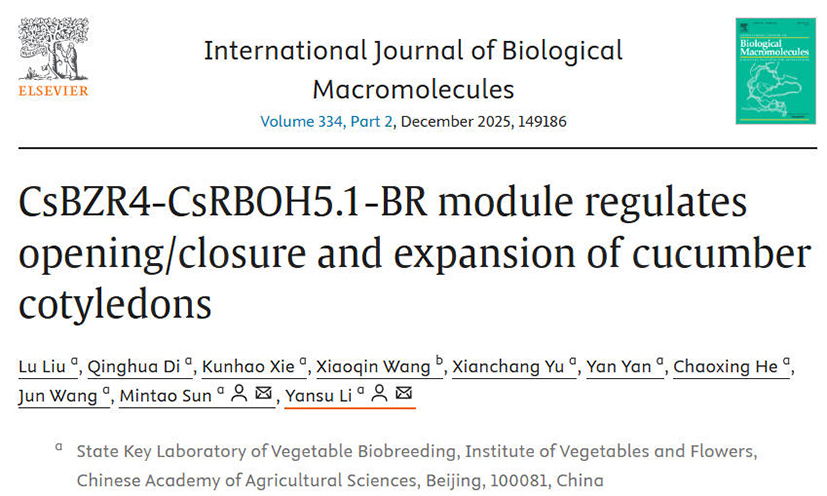 近日,中国农业科学院蔬菜花卉研究所设施栽培课题组在过氧化氢(H2O2)调控黄瓜子叶开闭以及生长的机制研究方面取得新进展,揭示了CsBZR4-CsRBOH5.1-BR模块调控黄瓜子叶的开闭和扩张。相关成果以“CsBZR4-CsRBOH5.1-BR module regulates opening/closure and expansion of cucumber cotyledons” 为题发表在国际期刊International Journal of Biological Macromolecules(IF=8.5)上。